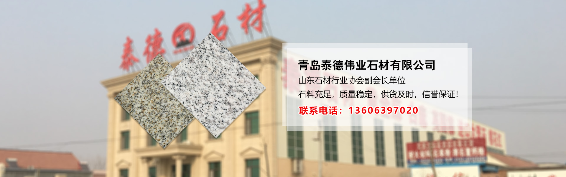 泰德石材成立于2001年,旗下?lián)碛星鄭u泰德偉業(yè)石材有限公司,平度市大澤山鎮(zhèn)泰德石材廠(chǎng)兩大石材生產(chǎn)基地和青島泰德精工建材有限公司,歷經(jīng)17年創(chuàng)業(yè)奮斗,用專(zhuān)業(yè)專(zhuān)注、敬業(yè)勤奮的實(shí)干精神和行為習(xí)慣,使我們的銷(xiāo)售遍及全國(guó)各地并暢銷(xiāo)國(guó)外,目前是山東省石材行業(yè)協(xié)會(huì)副會(huì)長(zhǎng)單位。 泰德石材主營(yíng)品種“黃金麻”“山東白麻”,擁有兩個(gè)大型礦山和一個(gè)大型儲(chǔ)料場(chǎng),常年儲(chǔ)備優(yōu)質(zhì)黃金麻白麻石料32000多立方,能夠滿(mǎn)足大型工程的原料需要! 泰德石材工廠(chǎng)有“組合鋸”15臺(tái),紅外線(xiàn)橋切機(jī)16臺(tái),全自動(dòng)16頭磨光機(jī)... [MORE + ]